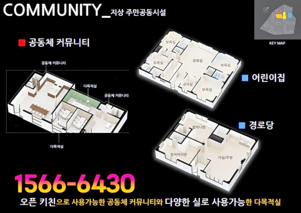 - 생활 지원 시설: 어린이집, 키즈카페, 경로당 등 다양한 연령대의 입주민들을 위한 시설이 설치되어 전 세대가 함께 소통하고 공존하는 커뮤니티 구조를 완성했습니다. 이러한 시설들은 입주민들의 실거주 만족도를 크게 높일 것으로 기대됩니다.