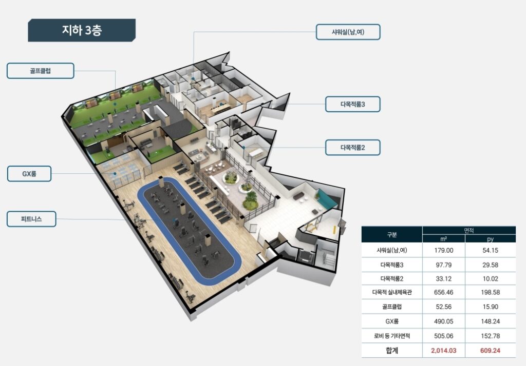 GX룸, 최신 기구를 갖춘 피트니스 센터는 입주민의 건강 관리를 지원하며, 다목적룸과 실내체육관은 활력 넘치는 여가 생활을 가능하게 합니다.